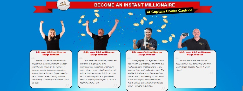 Bei Captain Cooks geht es eher unsportlich zu, aber das mit einer Menge Spielespaß, bei der vielfältigen Auswahl an Online-Casinospielen inklusive progressiven Jackpots, die nur darauf warten von einem ehrgeizigen Glücksritter geknackt zu werden.