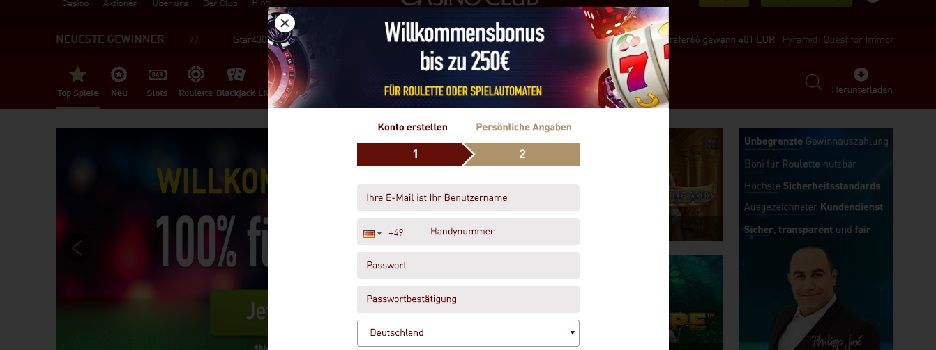 CasinoClub ist ein tolles Casino, indem ich vor ein paar Monaten angefangen habe zu spielen. Ich werde es nicht mehr wechseln. Ich bin vollkommen von den Angeboten überzeugt und kann nur beste Beurteilungen liefern. Das Wettangebot und die Spielautomaten sind genau das, was ich gesucht habe. Man kann mobil spielen und die Auszahlungsdauer ist kurz. Der Kundensupport unterstützt wirklich mit kompetenten Mitarbeitern. Ein Rundumpaket, mit Jackpots und super Software- Providern.
